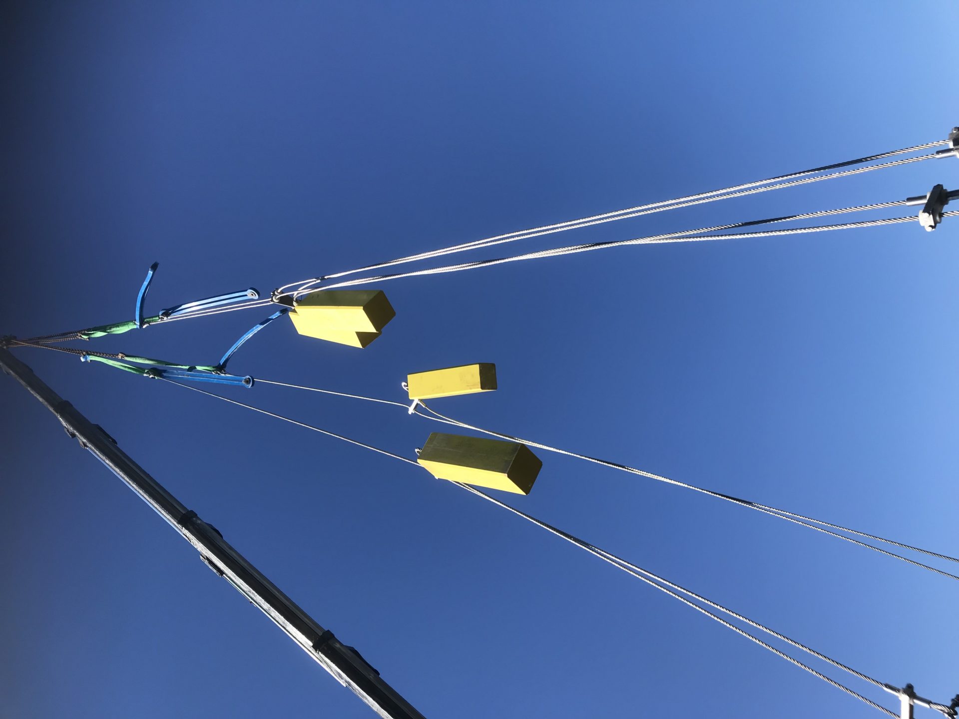 the angle of the buoy at the head of the dead body. - Replacement of the stainless steel cable line by a technical Dyneema fabric, bringing lightness, a better absorption of lightness, a better absorption of mechanical constraints linked to shearing, resistance to resistance to breakage and longevity.